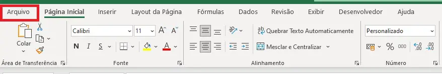 1.Clique na guia “Arquivo” na parte superior da planilha