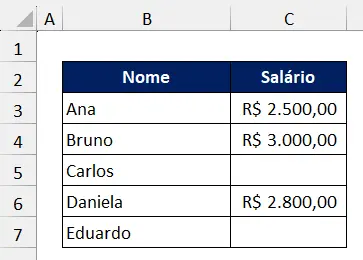 Imagine uma planilha de colaboradores:
