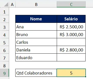A função trará o resultado 5. Ela contou todas as células preenchidas.