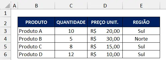 Imagine que você tem um controle de vendas, nosso objetivo é calcular o faturamento total apenas da região Sul.