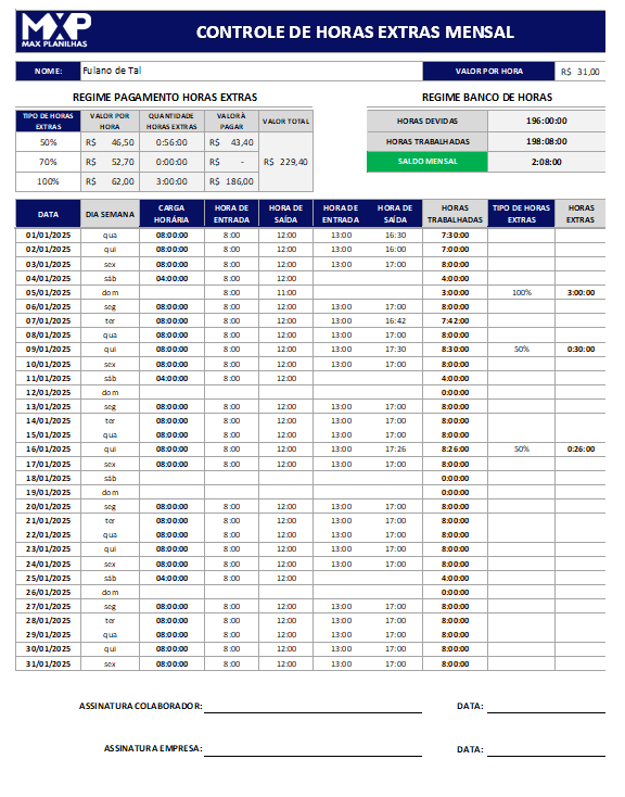 Controlar horas extras e calcular pagamentos com precisão é fundamental para empresas e colaboradores. Nossa Planilha de Controle de Horas Extras oferece uma solução prática e automatizada para gerenciar essas informações com eficiência.